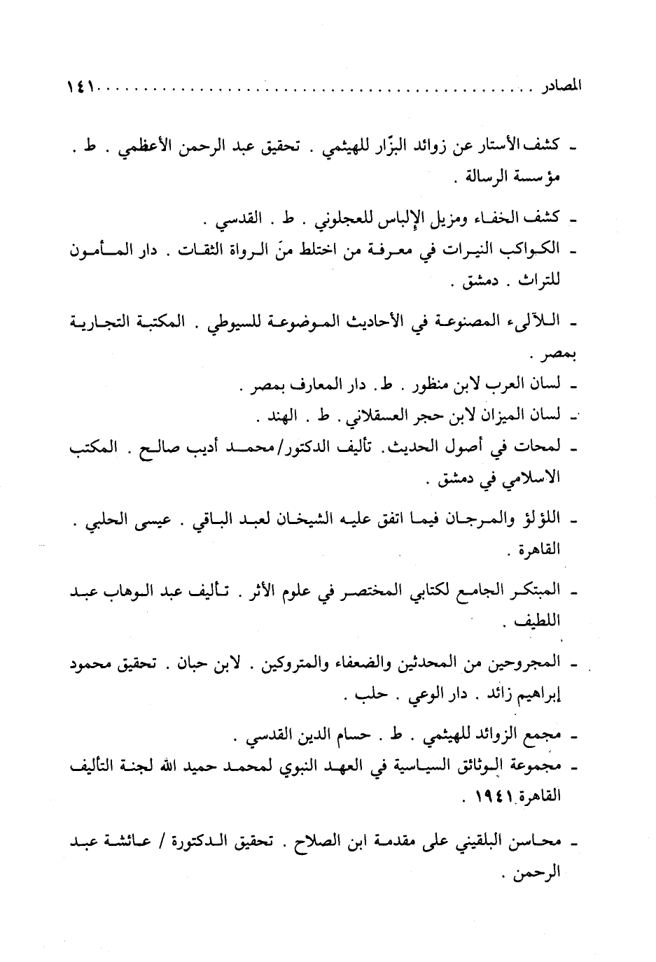 - المجروحين من المحدثين والضعفاء والمتروكين. لابن حبان. تحقيق محمود إبراهيم زائد. دار الوعي. حلب.