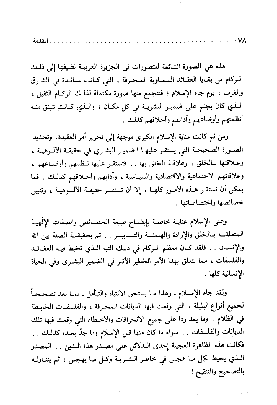 ولقد جاء الإسلام- وهذا ما يستحق الانتباه والتأمل- بما يعد تصحيحا لجميع أنواع البلبلة، التي وقعت فيها الديانات المحرفة، والفلسفات الخابطة في الظلام. وما يعد ردا على جميع الانحرافات والأخطاء التي وقعت فيها تلك الديانات والفلسفات.. سواء ما كان منها قبل الإسلام وما جدّ بعده كذلك..