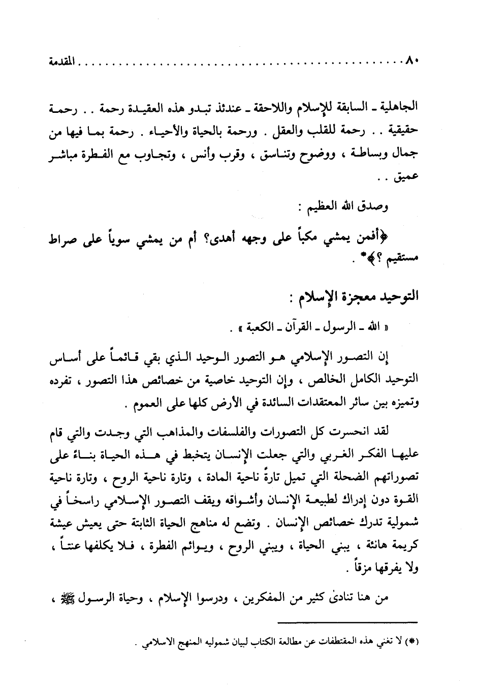 [ (1) ] لا تغني هذه المقتطفات عن مطالعة الكتاب لبيان شمولية المنهج الاسلامي.