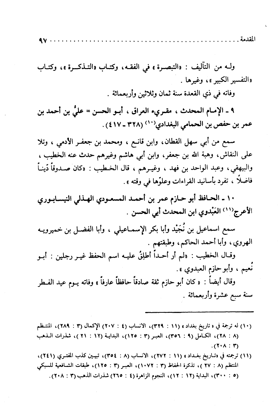 [ (10) ] له ترجمة في «تاريخ بغداد» (11: 329) ، الأنساب (4: 207) الإكمال (3: 289) ، المنتظم (8: 28) ، الكامل (9: 356) ، العبر (3: 125) ، البداية (12: 21) ، شذرات الذهب (3: 208) .