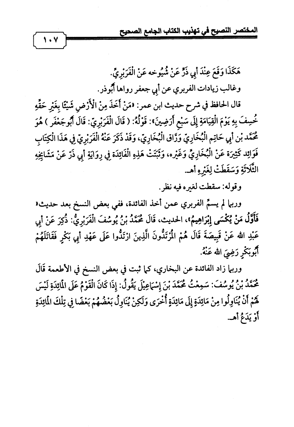 وغالب زيادات الفربري عن أبِي جعفر رواها أَبُوذر.