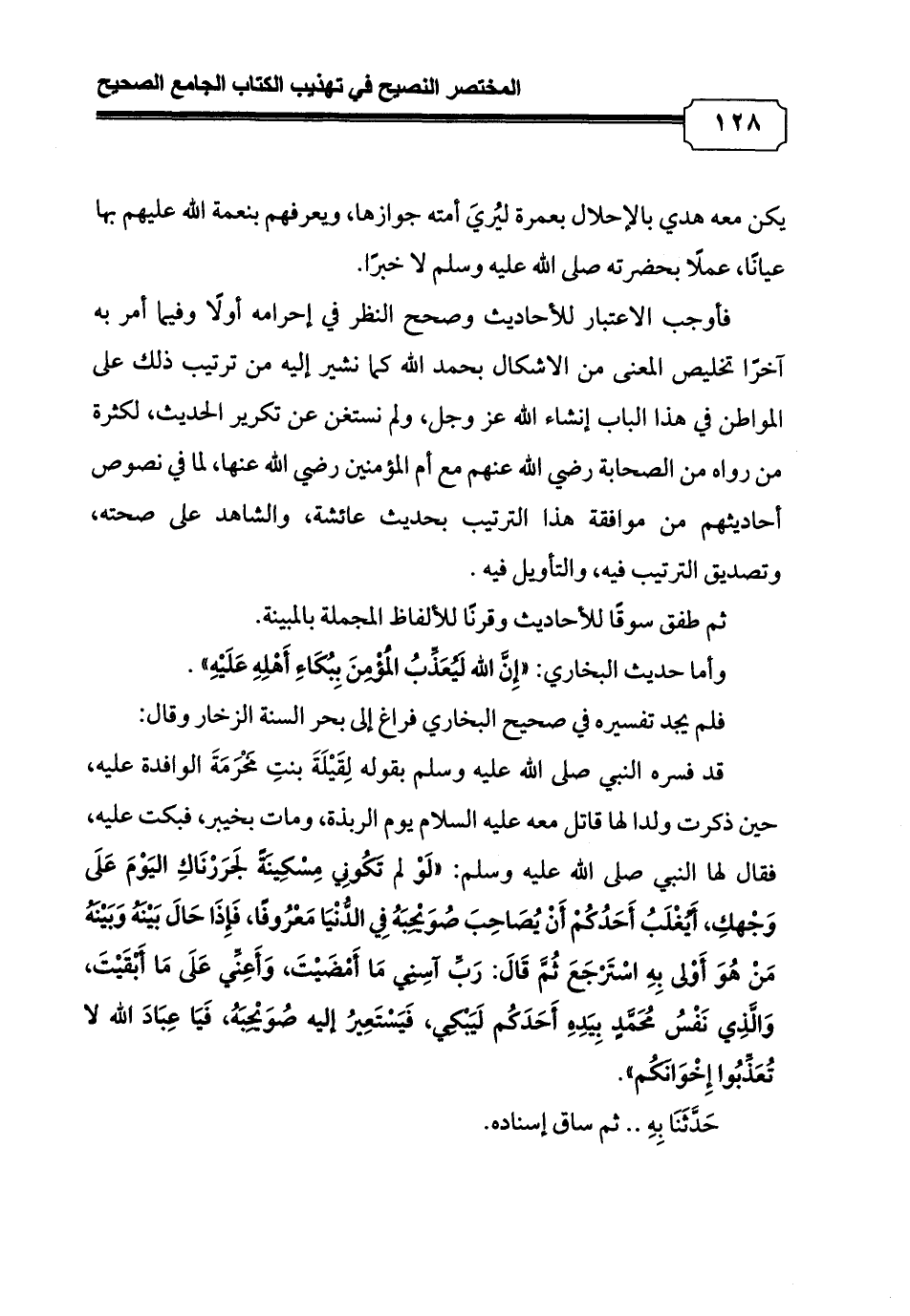 فأوجب الاعتبار للأحاديث وصحح النظر في إحرامه أولًا وفيما أمر به آخرًا تخليص المعنى من الاشكال بحمد الله كما نشير إليه من ترتيب ذلك على المواطن في هذا الباب إنشاء الله عز وجل، ولم نستغن عن تكرير الحديث، لكثرة من رواه من الصحابة رضي الله عنهم مع أم المؤمنين رضي الله عنها، لما في نصوص أحاديثهم من موافقة هذا الترتيب بحديث عائشة، والشاهد على صحته، وتصديق الترتيب فيه, والتأويل فيه.