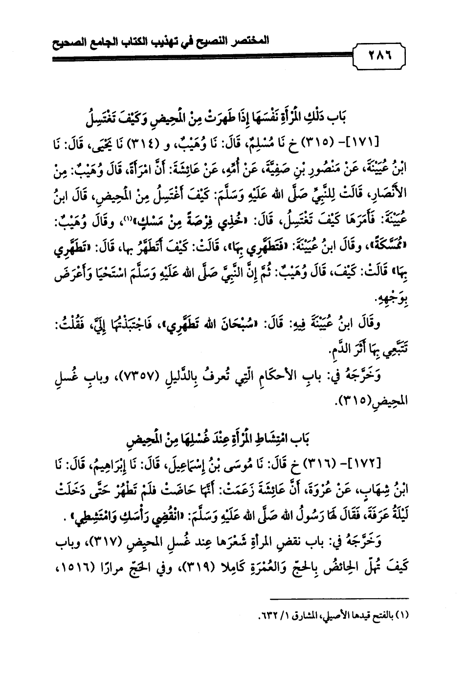 وَخَرَّجَهُ في: بابِ الأحكَامِ الّتِي تُعرفُ بِالدَّليلِ (7357)، وبابِ غُسلِ المحِيضِ (315).