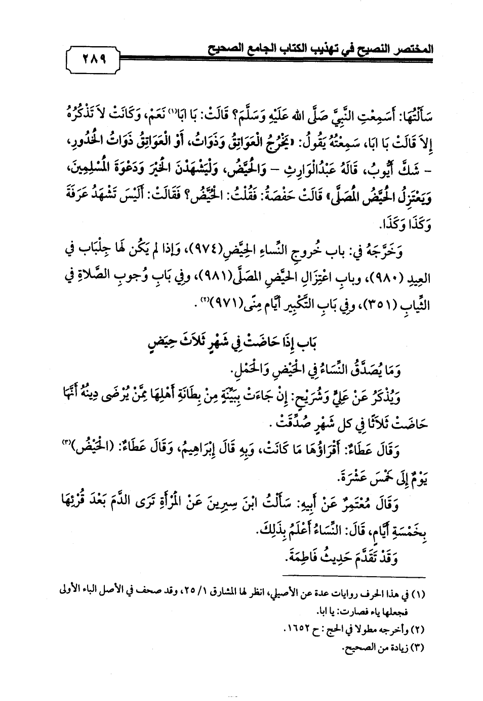 وَخَرَّجَهُ في: باب خُروجِ النِّساءِ الحِيَّضِ (974)، وَإذا لم يَكُن لَها جِلْبَاب في العِيدِ (980)، وبابِ اعْتِزَالِ الحيَّضِ المصَلَّى (981)، وفِي بَابِ وُجوبِ الصَّلاةِ في الثِّيابِ (351)، وفِي بَابِ التَّكْبِير أيَّام مِنًى (971) (¬2).