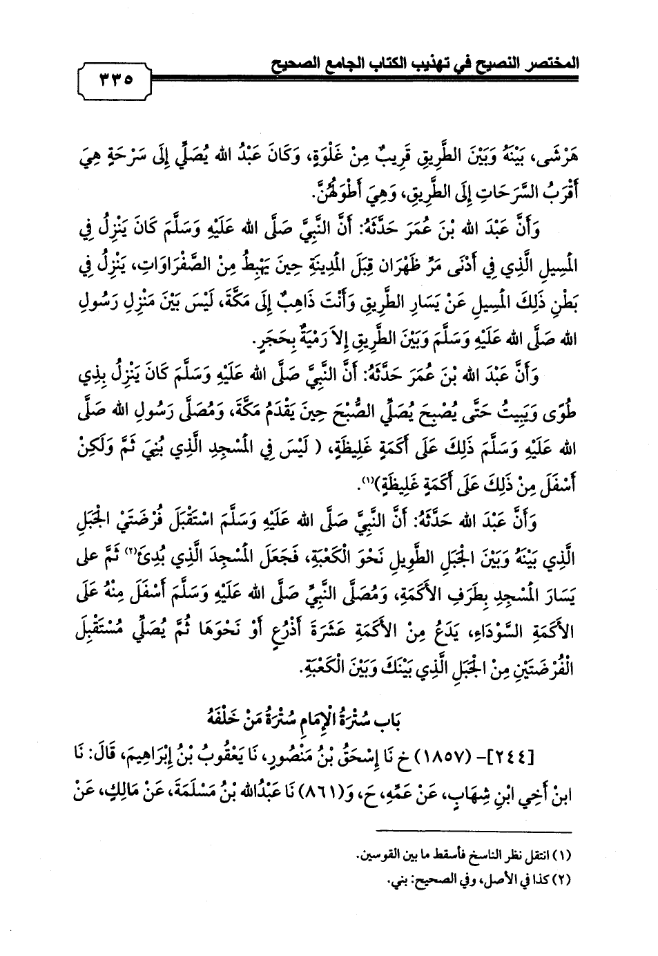 [244]- (1857) خ نَا إِسْحَقُ بْنُ مَنْصُورٍ، نَا يَعْقُوبُ بْنُ إِبْرَاهِيمَ، قَالَ: نَا ابنْ أَخِي ابْنِ شِهَابٍ، عَنْ عَمِّهِ، حَ, وَ (861) نَا عَبْدُالله بْنُ مَسْلَمَةَ، عَنْ مَالِكٍ،