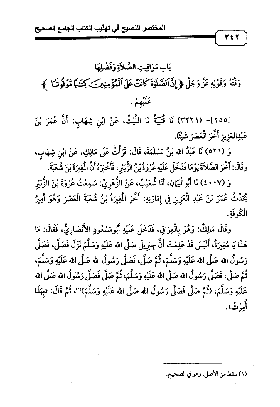 وَ (521) نَا عَبْدُ الله بْنُ مَسْلَمَةَ، قَالَ: قَرَأْتُ عَلَى مَالِكٍ، عَنْ ابْنِ شِهَابٍ، وقَالَ: أَخَّرَ الصَّلاَةَ يَوْمًا فَدَخَلَ عَلَيْهِ عُرْوَةُ بْنُ الزُّبَيْرِ، فَأَخْبَرَهُ أَنَّ الْمُغِيرَةَ بْنَ شُعْبَةَ.