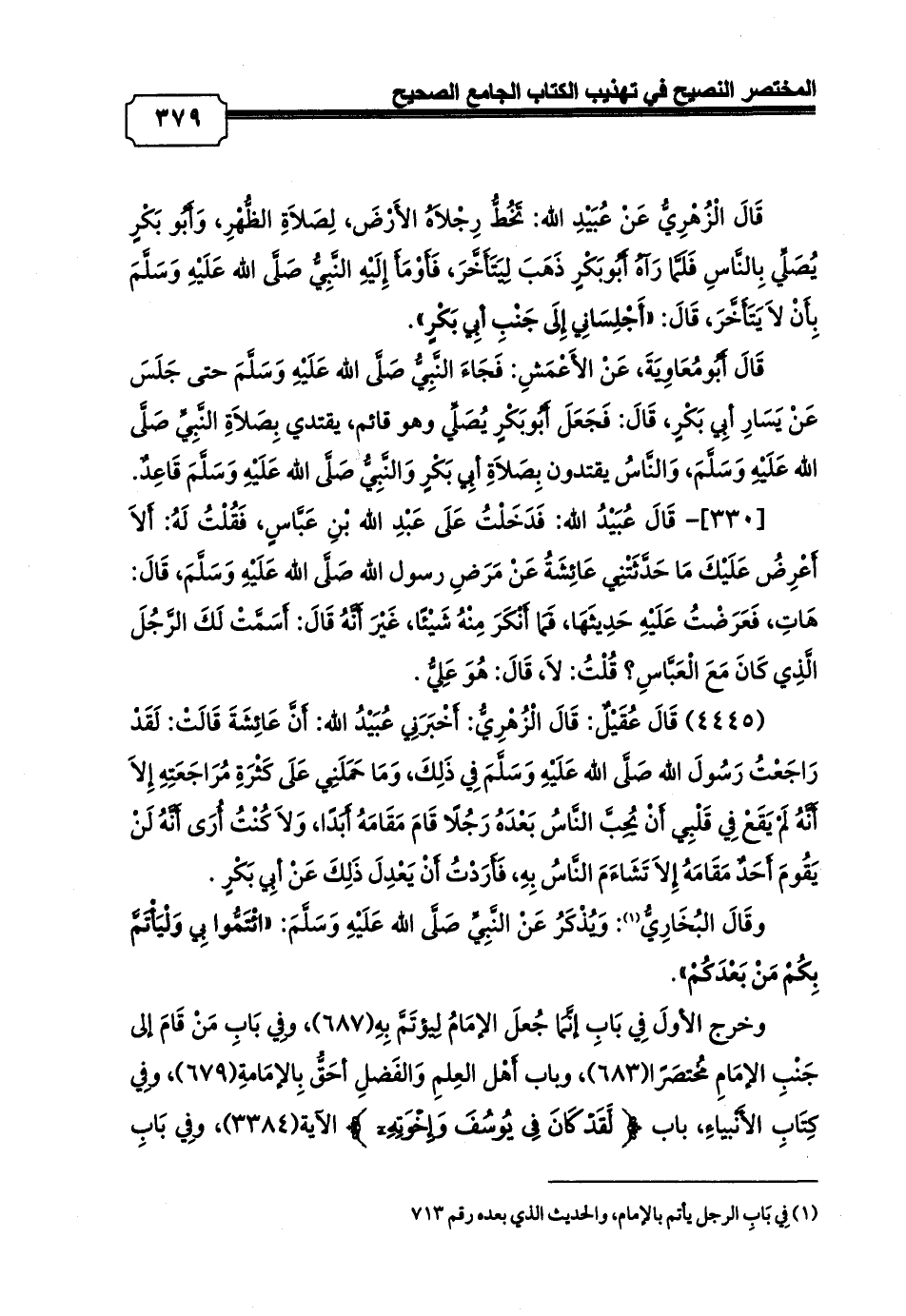 (¬1) فِي بَابِ الرجل يأتم بالإمام، والحديث الذي بعده رقم 713