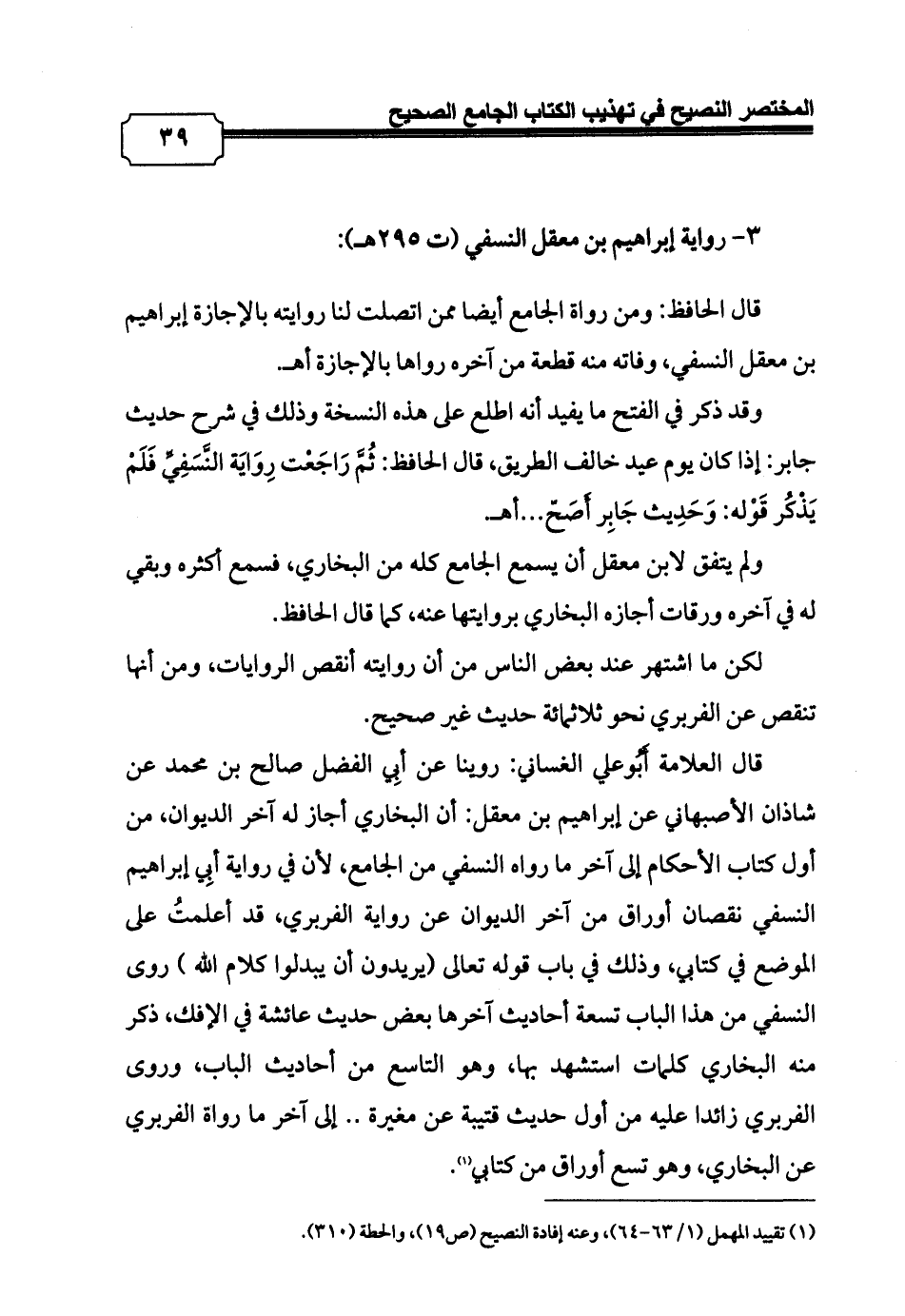 كتاب المختصر النصيح في تهذيب الكتاب الجامع الصحيح (اسم الجزء: 1)
