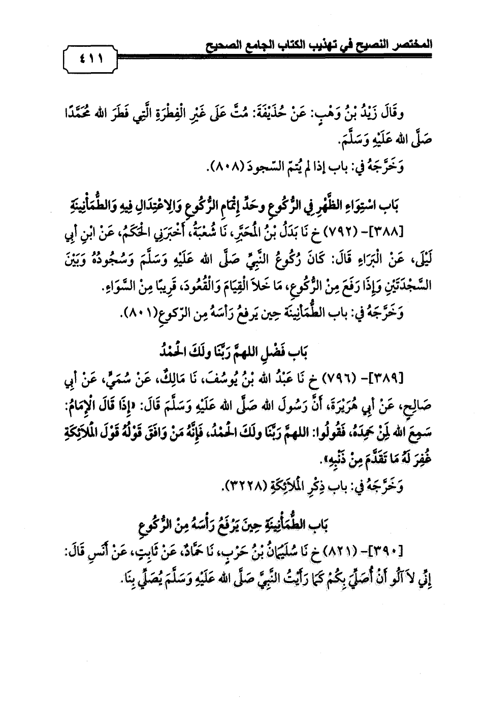وَخَرَّجَهُ في: باب الطُّمَأنِينَة حِين يَرفعُ رَأسَهُ مِن الرّكوعِ (801).