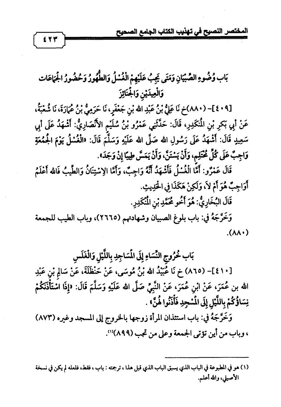 [410]- (865) خ نَا عُبَيْدُ الله بْنُ مُوسَى، عَنْ حَنْظَلَةَ، عَنْ سَالِمِ بْنِ عَبْدِ الله بن عُمَرَ، عَنْ ابْنِ عُمَرَ، عَنْ النَّبِيِّ صَلَّى الله عَلَيْهِ وَسَلَّمَ قَالَ: «إِذَا اسْتَأْذَنَكُمْ نِسَاؤُكُمْ بِاللَّيْلِ إِلَى الْمَسْجِدِ فَأْذَنُوا لَهُنَّ».
