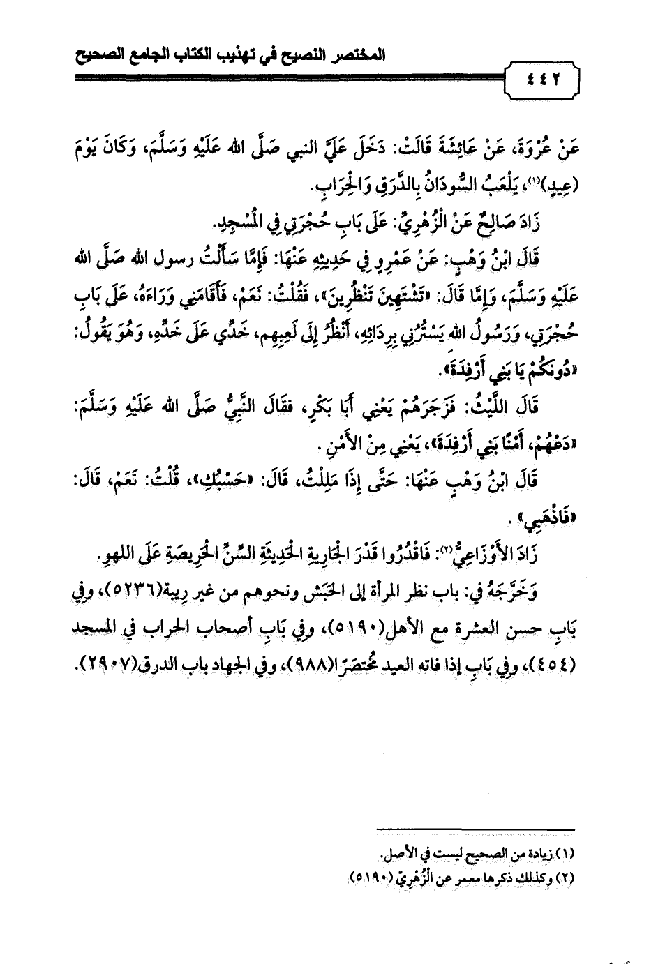 وَخَرَّجَهُ في: باب نظر المرأة إلى الحَبَش ونحوهم من غير رِيبة (5236)، وفِي بَابِ حسن العشرة مع الأهل (5190)، وفِي بَابِ أصحاب الحراب في المسجد (454)، وفِي بَابِ إذا فاته العيد مُختصَرًا (988)، وفي الجهاد باب الدرق (2907).