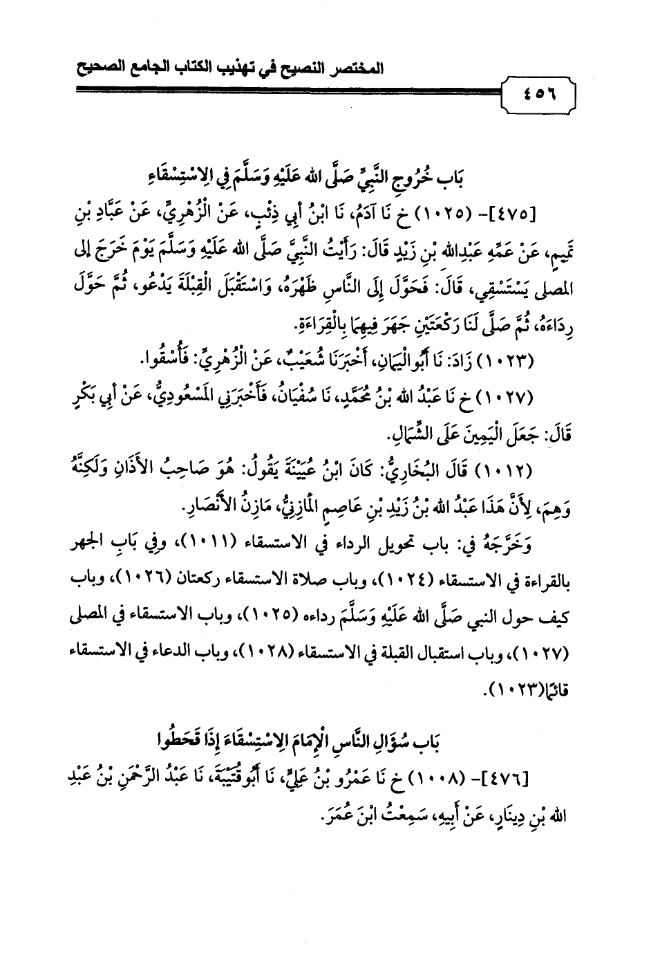 وَخَرَّجَهُ في: باب تحويل الرداء في الاستسقاء (1011)، وفِي بَابِ الجهر بالقراءة في الاستسقاء (1024) , وباب صلاة الاستسقاء ركعتان (1026)، وباب كيف حول النبي صَلَّى الله عَلَيْهِ وَسَلَّمَ رداءه (1025)، وباب الاستسقاء في المصلى (1027)، وباب استقبال القبلة في الاستسقاء (1028)، وباب الدعاء في الاستسقاء قائمًا (1023).