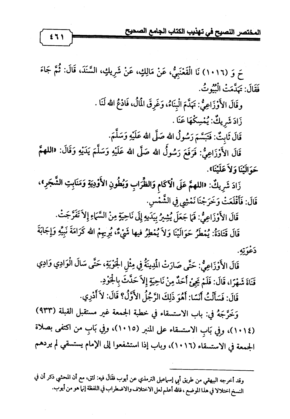 حَ وَ (1016) نَا الْقَعْنَبِيُّ، عَنْ مَالِكٍ، عَنْ شَرِيكٍ، السَّنَدَ، قَالَ: ثُمَّ جَاءَ فَقَالَ: تَهَدَّمَتْ الْبُيُوتُ.