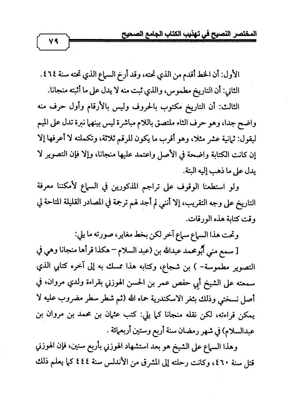 كتاب المختصر النصيح في تهذيب الكتاب الجامع الصحيح (اسم الجزء: 1)