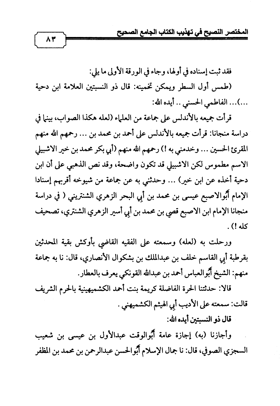 كتاب المختصر النصيح في تهذيب الكتاب الجامع الصحيح (اسم الجزء: 1)