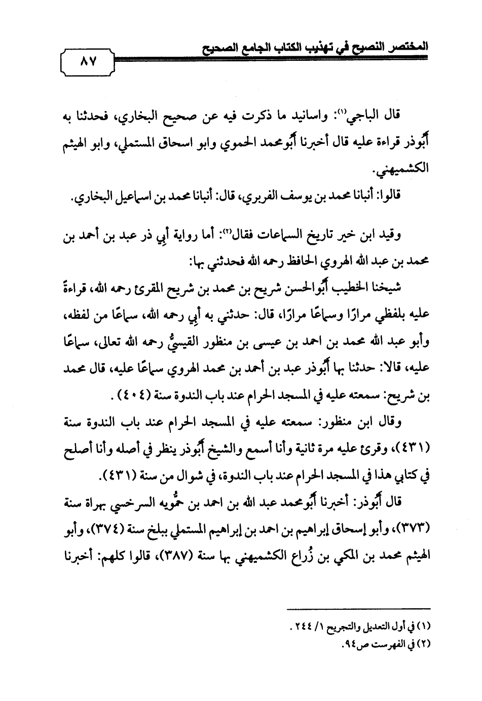 كتاب المختصر النصيح في تهذيب الكتاب الجامع الصحيح (اسم الجزء: 1)