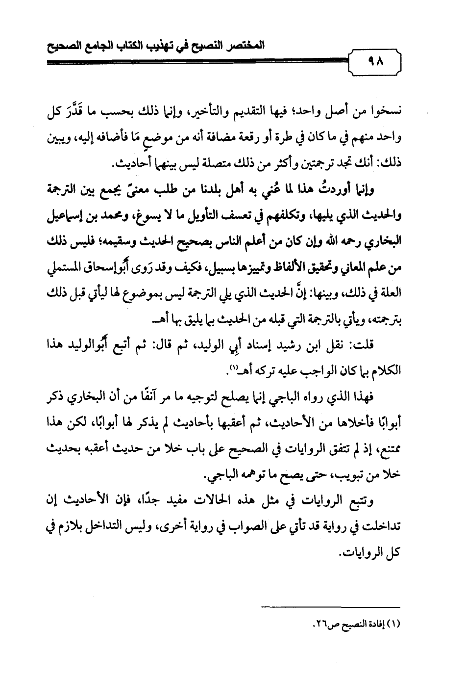 كتاب المختصر النصيح في تهذيب الكتاب الجامع الصحيح (اسم الجزء: 1)