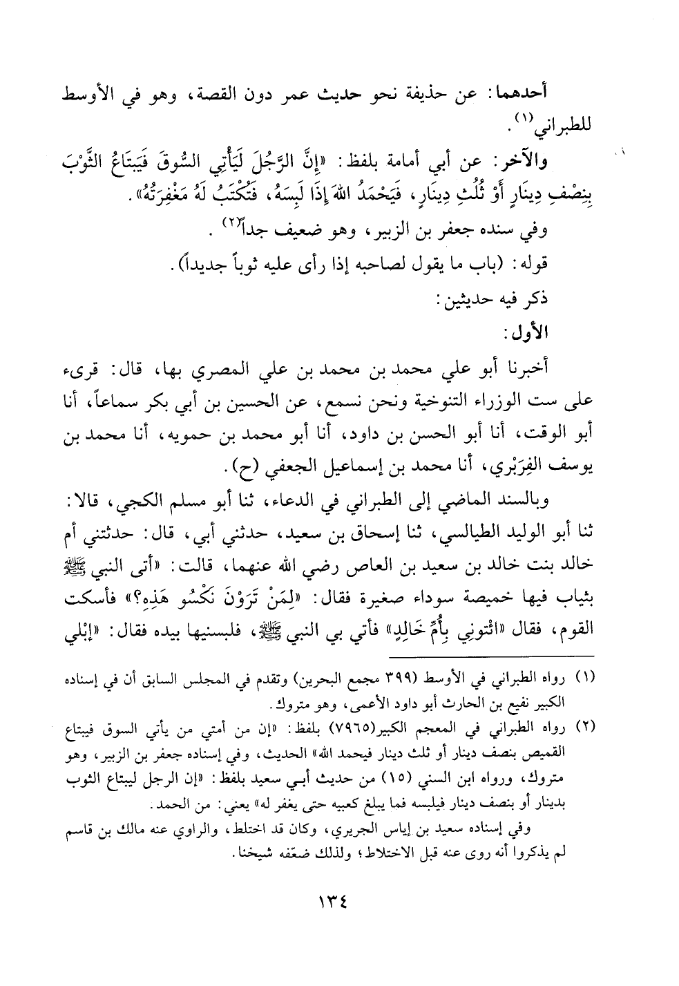والآخر: عن أبي أمامة بلفظ: ((إن الرجل ليأتي السوق فيبتاع الثوب بنصف دينارٍ أو ثلث دينارٍ، فيحمد الله إذا لبسه، فتكتب له مغفرته)).