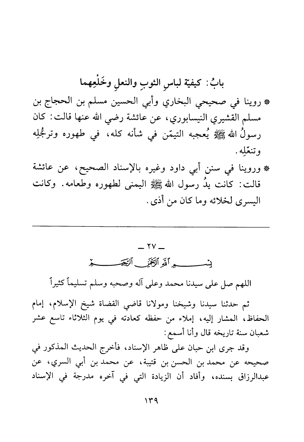 [[باب: كيفية لباس الثوب والنعل وخلعهما