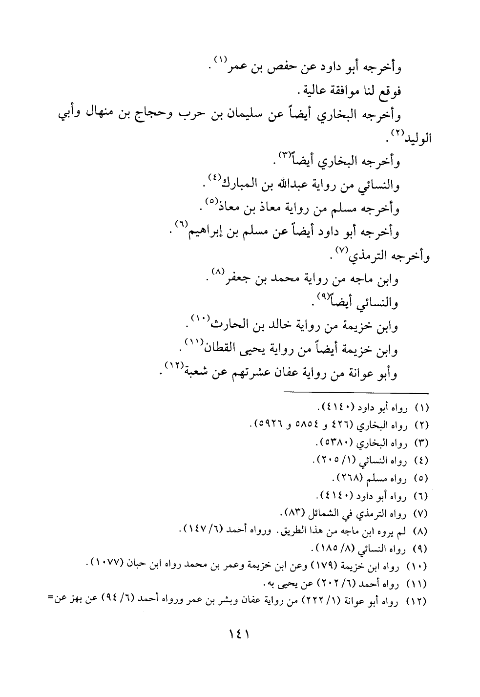 وأخرجه البخاري أيضاً عن سليمان بن حرب وحجاج بن منهال وأبي الوليد.