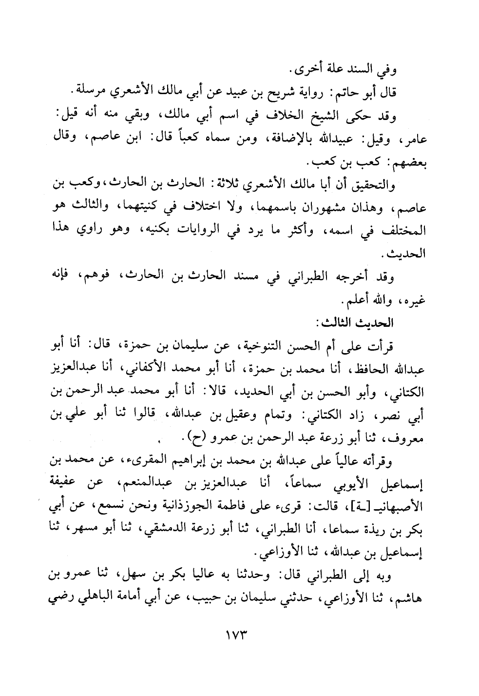 والتحقيق أن أبا مالك الأشعري ثلاثة: الحارث بن الحارث، وكعب بن عاصم، وهذان مشهوران باسمهما، ولا اختلاف في كنيتهما، والثالث هو المختلف في اسمه، وأكثر ما يرد في الروايات بكنيه، وهو راوي هذا الحديث.