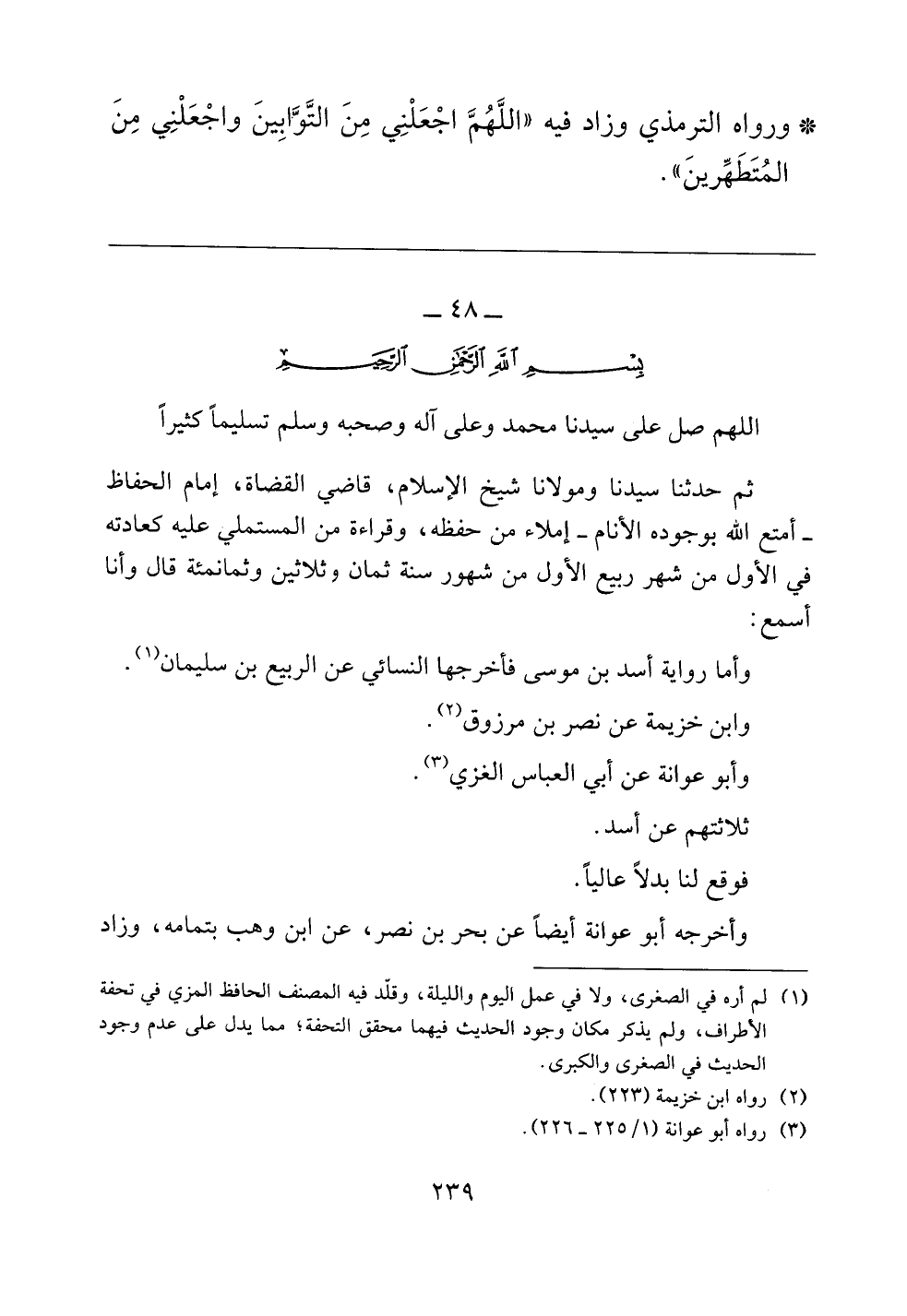 ثم حدثنا سيدنا ومولانا شيخ الإسلام، قاضي القضاة، إمام الحفاظ -أمتع الله بوجوده الأنام- إملاء من حفظه، وقراءة من المستملي عليه كعادته في الأول من شهر ربيع الأول من شهور سنة ثمان وثلاثين وثمانمئة قال وأنا أسمع: