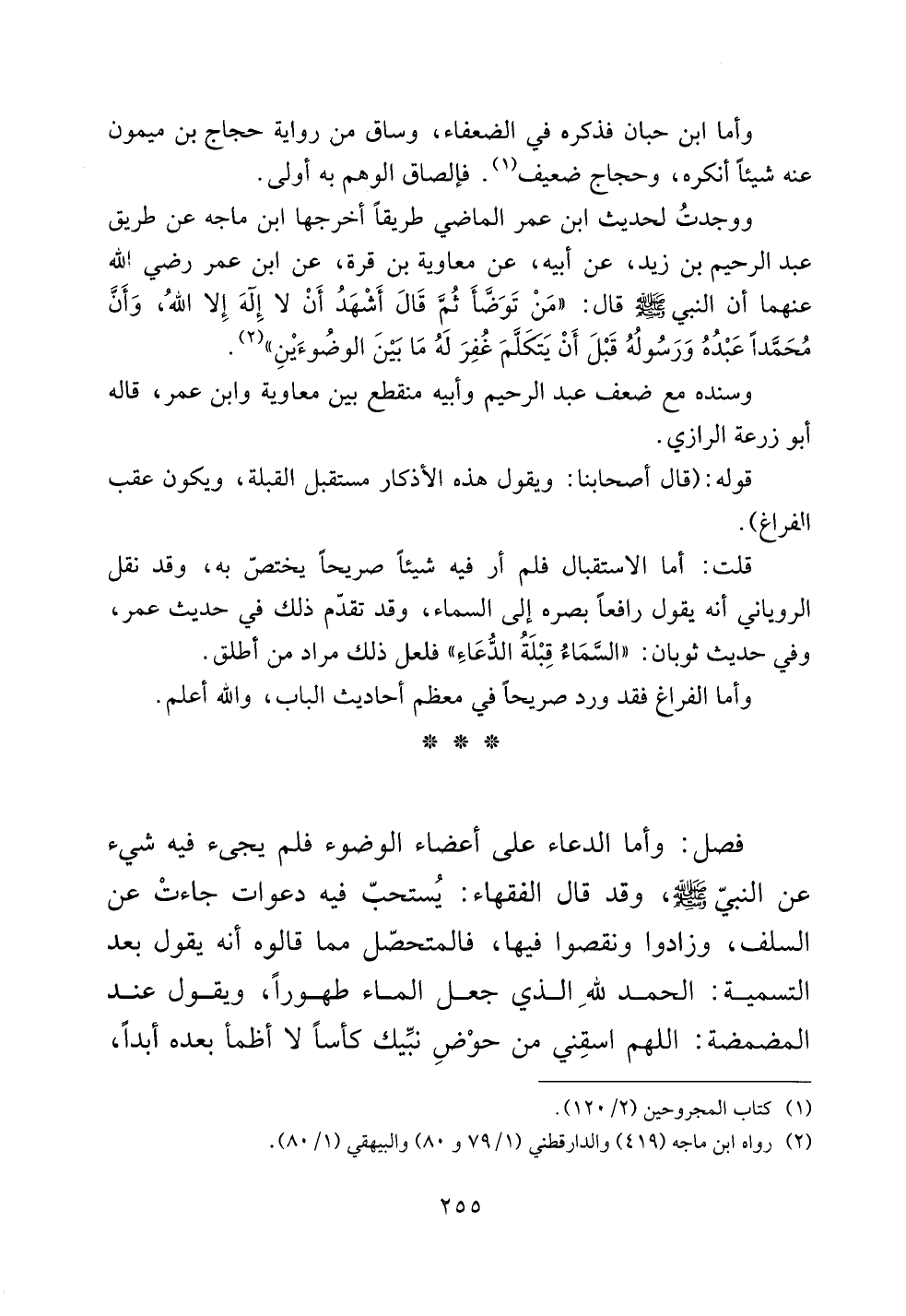 ووجدت لحديث ابن عمر الماضي طريقاً أخرجها ابن ماجه عن طريق عبد الرحيم بن زيد، عن أبيه، عن معاوية بن قرة، عن ابن عمر رضي الله عنهما أن النبي صلى الله عليه وسلم قال: ((من توضأ ثم قال أشهد أن لا إله إلا الله، وأن محمداً عبده ورسوله قبل أن يتكلم غفر له ما بين الوضوءين)).