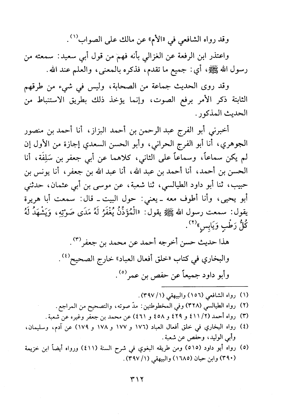 وقد روى الحديث جماعة من الصحابة، وليس في شيء من طرقهم الثابتة ذكر الأمر برفع الصوت، وإنما يؤخذ ذلك بطريق الاستنباط من الحديث المذكور.