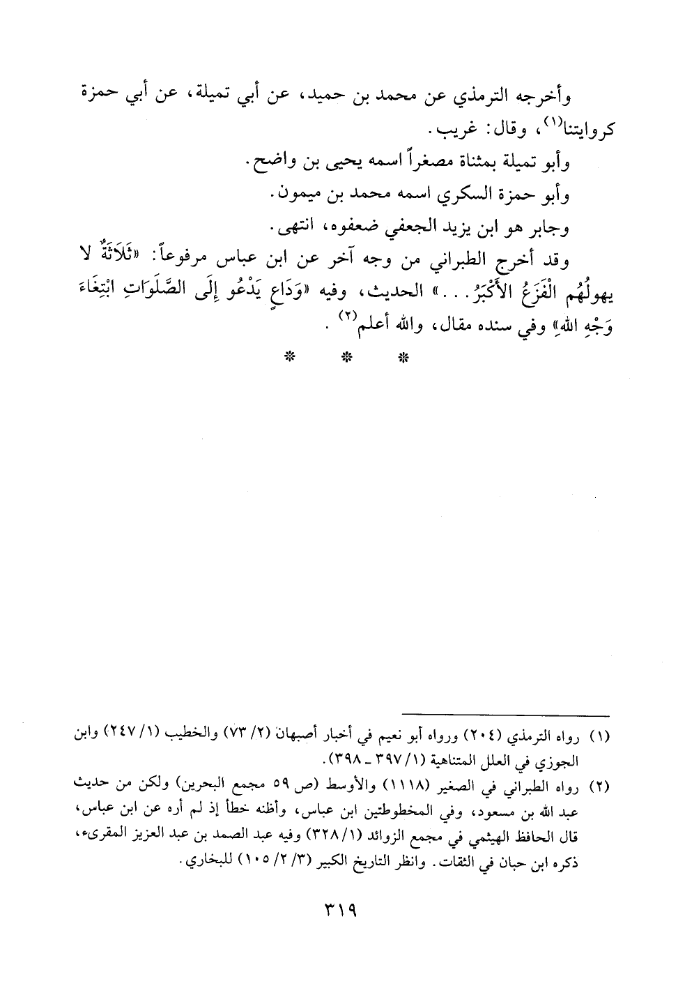 وأخرجه الترمذي عن محمد بن حميد، عن أبي تميلة، عن أبي حمزة كروايتنا، وقال: غريب.