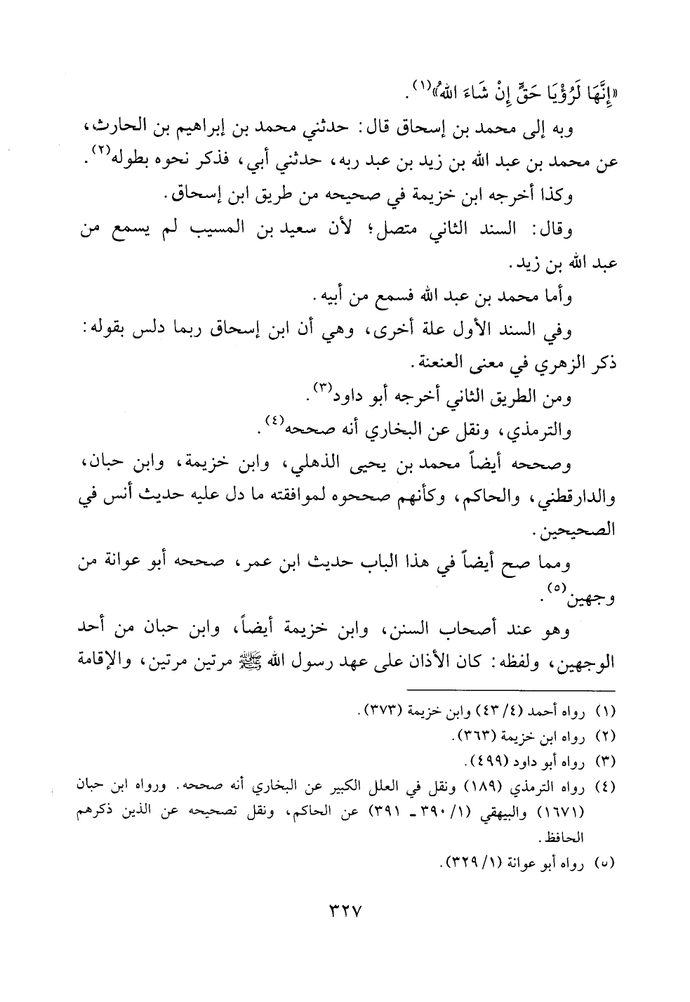 وبه إلى محمد بن إسحاق قال: حدثني محمد بن إبراهيم بن الحارث، عن محمد بن عبد الله بن زيد بن عبد ربه، حدثني أبي، فذكر نحوه بطوله.