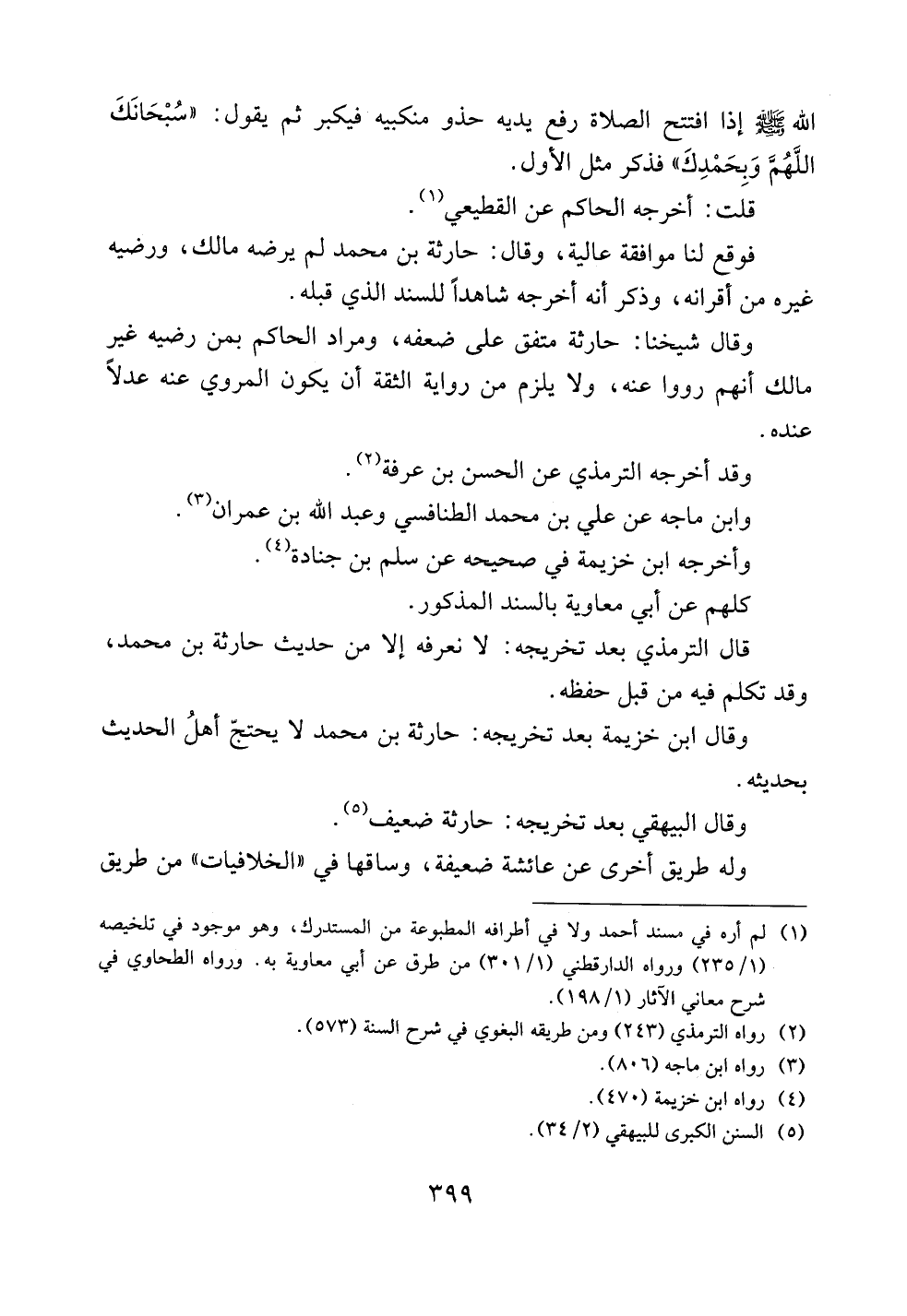 وقال البيهقي بعد تخريجه: حارثة ضعيف.