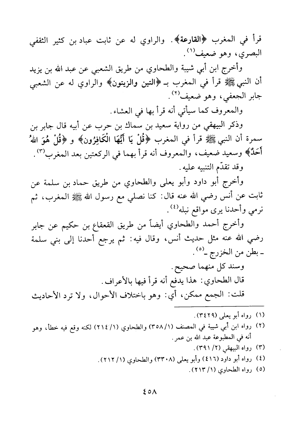 قرأ في المغرب {القارعة}. والراوي له عن ثابت عباد بن كثير الثقفي البصري، وهو ضعيف.