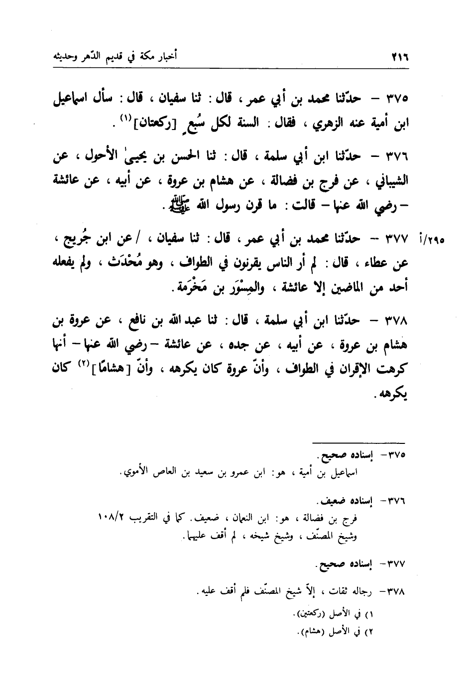 377 - حَدَّثَنَا مُحَمَّدُ بْنُ أَبِي عُمَرَ قَالَ: ثنا سُفْيَانُ، عَنِ ابْنِ جُرَيْجٍ، عَنْ عَطَاءٍ قَالَ: " §لَمْ أَرَ النَّاسَ يَقْرِنُونَ فِي الطَّوَافِ وَهُوَ مُحْدَثٌ، وَلَمْ يَفْعَلْهُ أَحَدٌ مِنَ الْمَاضِينَ إِلَّا عَائِشَةُ وَالْمِسْوَرُ بْنُ مَخْرَمَةَ "