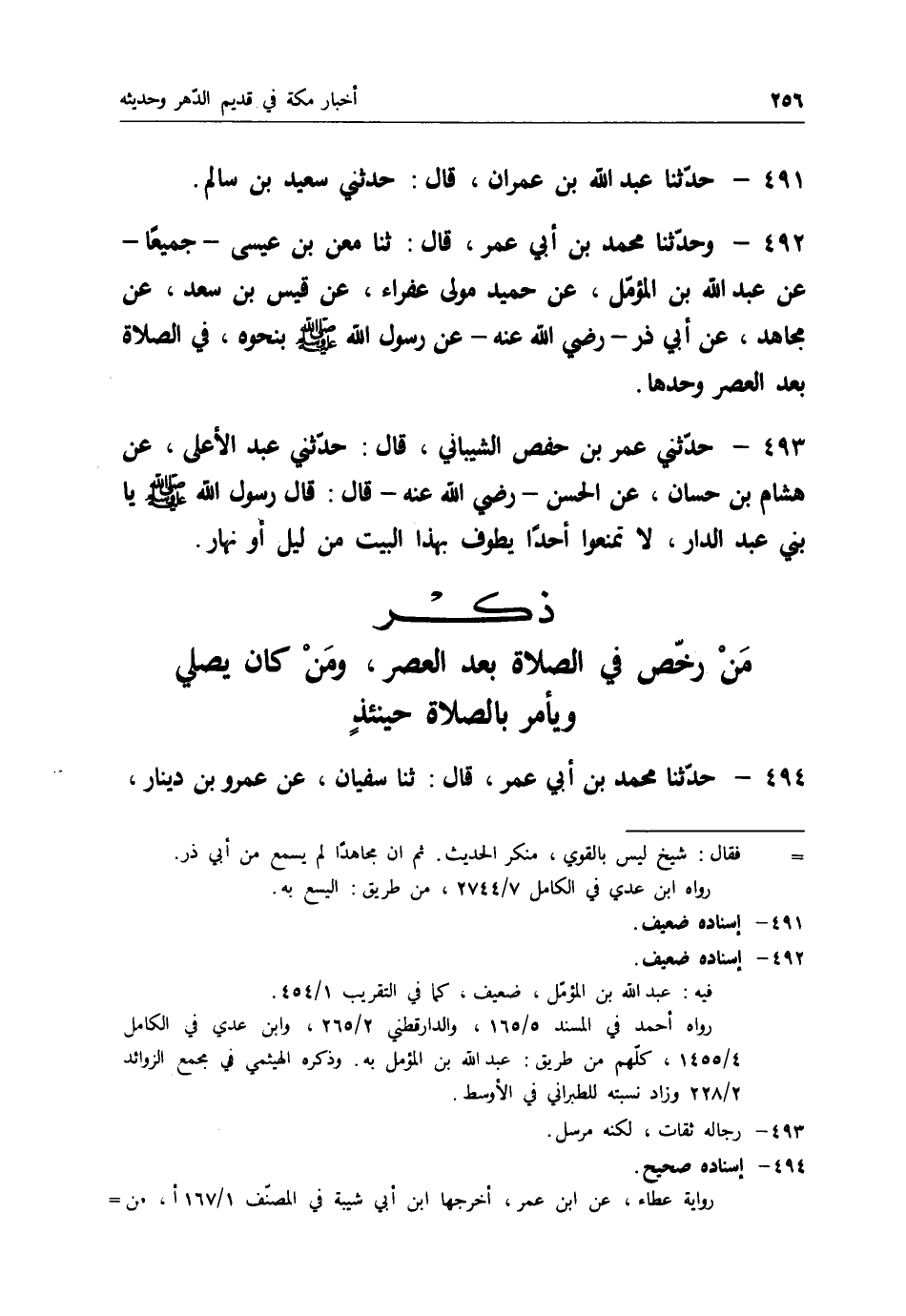 494 - حَدَّثَنَا مُحَمَّدُ بْنُ أَبِي عُمَرَ قَالَ: ثنا سُفْيَانُ، عَنْ عَمْرُو بْنُ دِينَارٍ -[257]- قَالَ: " §رَأَيْتُ أَنَا وَعَطَاءُ بْنُ أَبِي رَبَاحٍ عَبْدَ اللهِ بْنَ عُمَرَ رَضِيَ اللهُ عَنْهُمَا طَافَ بَعْدَ الصُّبْحِ وَصَلَّى "