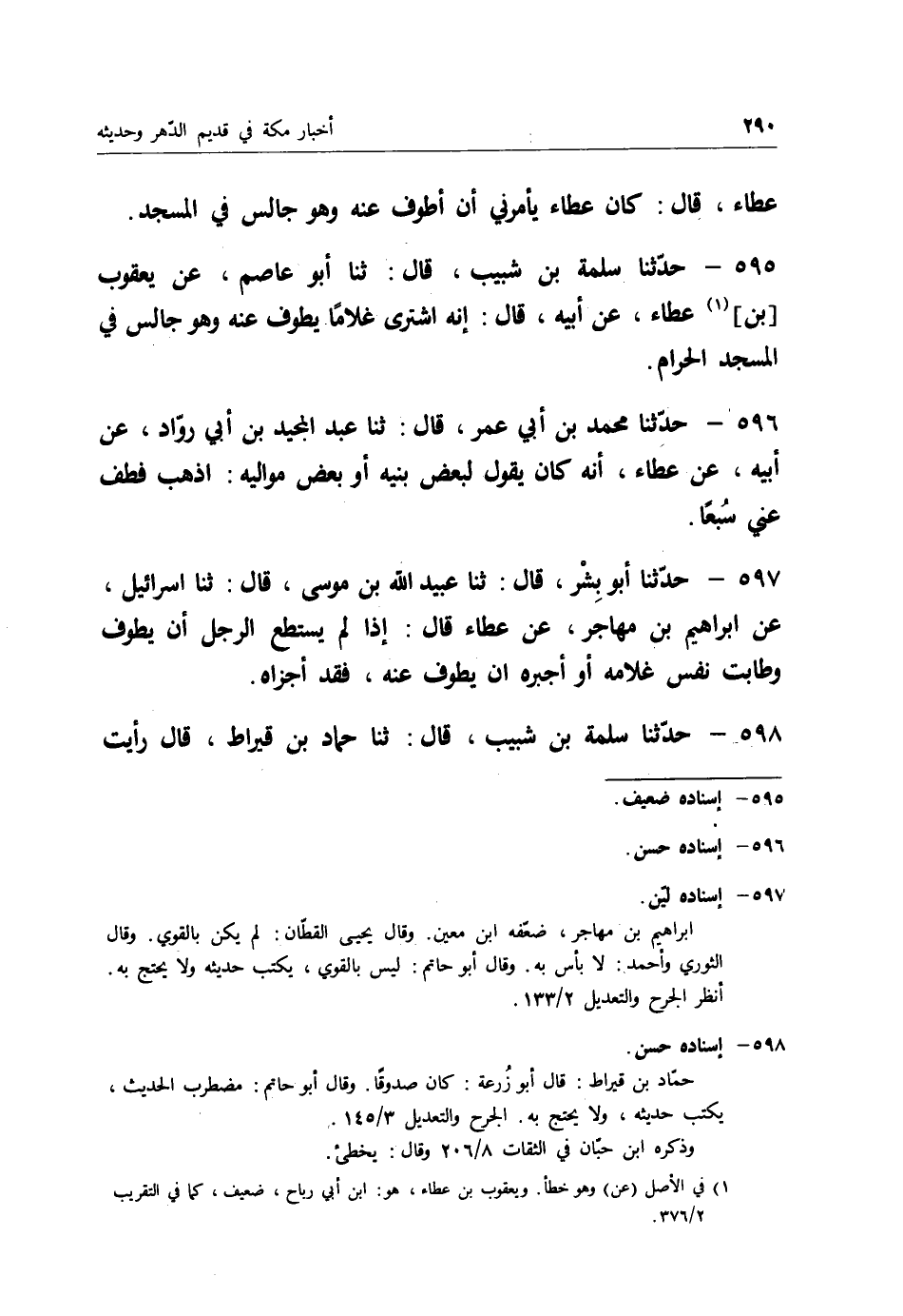 596 - حَدَّثَنَا مُحَمَّدُ بْنُ أَبِي عُمَرَ قَالَ: ثنا عَبْدُ الْمَجِيدِ بْنُ أَبِي رَوَّادٍ، عَنْ أَبِيهِ، عَنْ عَطَاءٍ، أَنَّهُ كَانَ يَقُولُ لِبَعْضِ بَنِيهِ أَوْ بَعْضِ مَوَالِيهِ: " §اذْهَبْ فَطُفْ عَنِّي سَبْعًا "