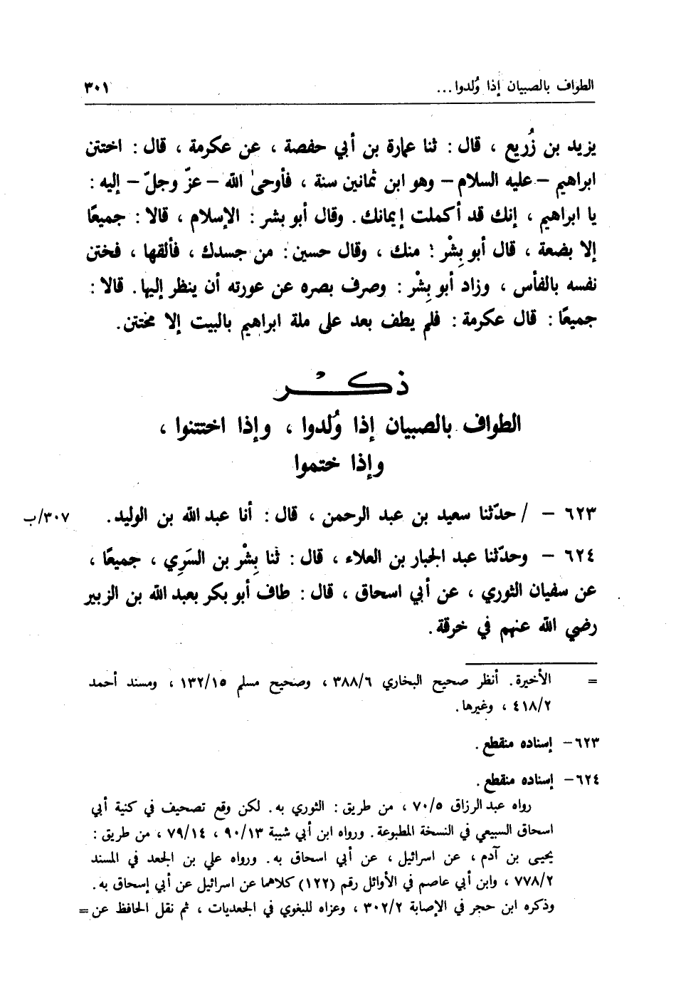624 - وَحَدَّثَنَا عَبْدُ الْجَبَّارِ بْنُ الْعَلَاءِ قَالَ: ثنا بِشْرُ بْنُ السَّرِيِّ، جَمِيعًا عَنْ سُفْيَانَ الثَّوْرِيِّ، عَنْ أَبِي إِسْحَاقَ قَالَ: " §طَافَ أَبُو بَكْرٍ بِعَبْدِ اللهِ بْنِ الزُّبَيْرِ رَضِيَ اللهُ عَنْهُمْ فِي خِرْقَةٍ "