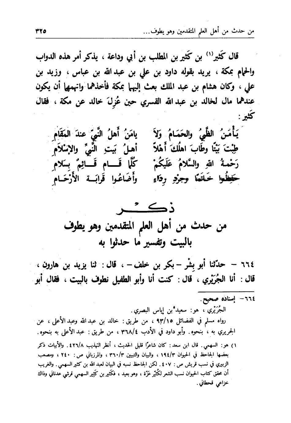 §ذِكْرُ مَنْ حَدَّثَ مِنْ أَهْلِ الْعِلْمِ الْمُتَقَدِّمِينَ وَهُوَ يَطُوفُ بِالْبَيْتِ وَتَفْسِيرِ مَا حَدَّثُوا بِهِ