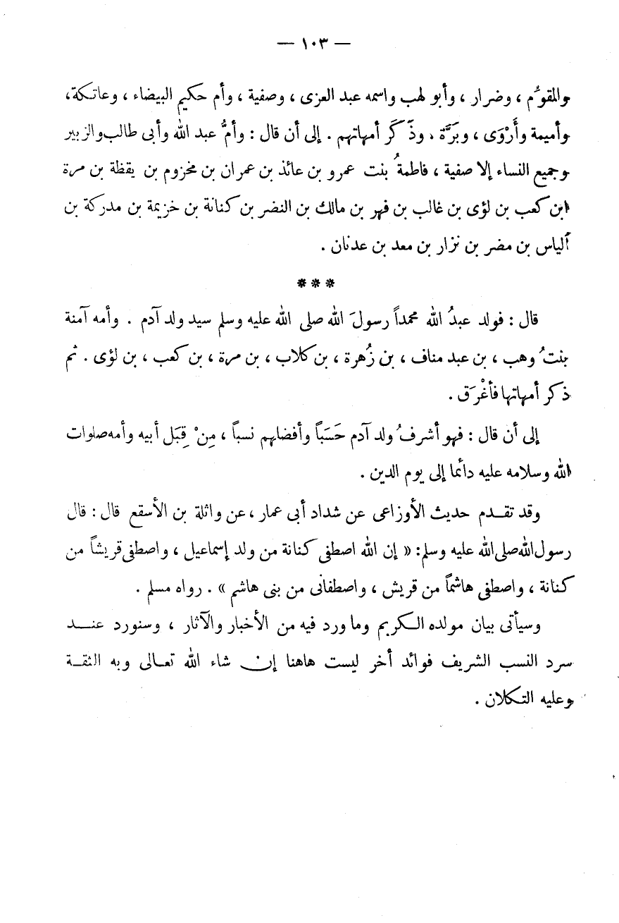 وَسَيَأْتِي بَيَانُ مَوْلِدِهِ الْكَرِيمِ وَمَا وَرَدَ فِيهِ مِنَ الْأَخْبَارِ وَالْآثَارِ، وَسَنُورِدُ عِنْدَ سَرْدِ النَّسَبِ الشَّرِيفِ فَوَائِدَ أُخَرَ لَيْسَتْ هَاهُنَا إِنْ شَاءَ اللَّهُ تَعَالَى وَبِهِ الثِّقَةُ وَعَلَيْهِ التُّكْلَانُ.