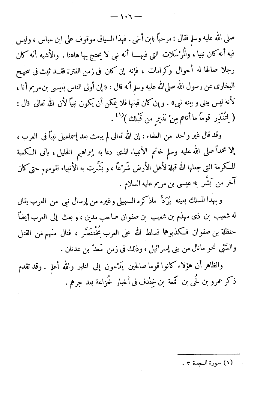 وَقَدْ قَالَ غَيْرُ وَاحِدٍ مِنَ الْعُلَمَاءِ: إِنَّ اللَّهَ تَعَالَى لَمْ يَبْعَثْ بَعْدَ إِسْمَاعِيلَ نَبِيًّا فِي الْعَرَبِ، إِلَّا مُحَمَّدًا صَلَّى اللَّهُ عَلَيْهِ وَسَلَّمَ خَاتَمَ الْأَنْبِيَاءِ الَّذِي دَعَا بِهِ ابْرَاهِيمُ الْخَلِيلُ، بَانِي الْكَعْبَةِ الْمُكَرَّمَةِ الَّتِي جَعَلَهَا اللَّهُ قِبْلَةً لِأَهْلِ الْأَرْضِ شَرْعًا، وَبَشَّرَتْ بِهِ الْأَنْبِيَاءُ لِقَوْمِهِمْ حَتَّى كَانَ آخِرَ مَنْ بَشَّرَ بِهِ عِيسَى بن مَرْيَمَ عَلَيْهِ السَّلَامُ.