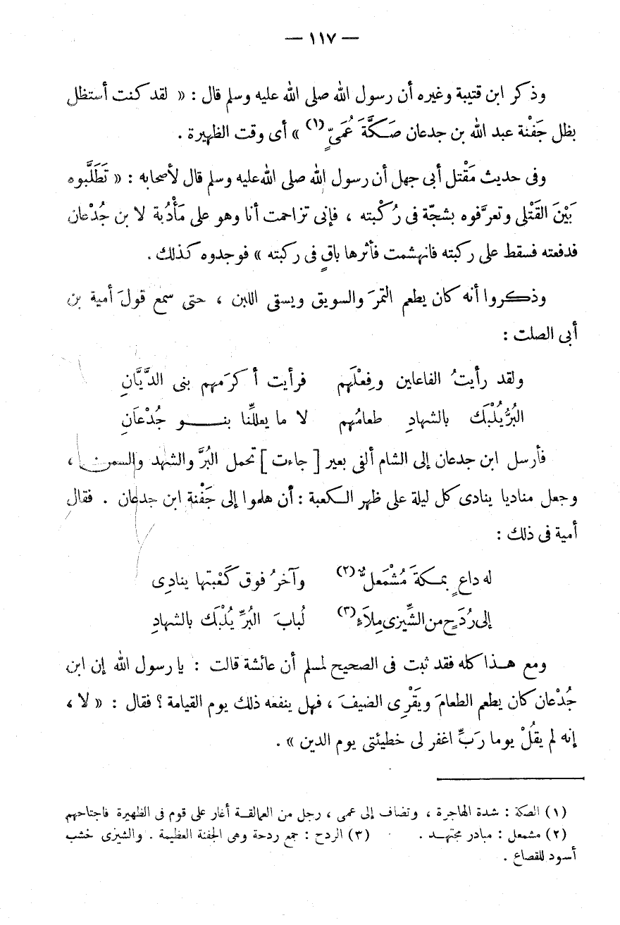 وَذَكَرَ ابْنُ قُتَيْبَةَ وَغَيْرُهُ أَنَّ رَسُولَ اللَّهِ صَلَّى اللَّهُ عَلَيْهِ وَسَلَّمَ قَالَ: " لَقَدْ كُنْتُ أَسْتَظِلُّ بِظِلِّ جَفْنَةِ عَبْدِ اللَّهِ بْنِ جُدْعَانَ صَكَّةَ عُمَيٍّ (1) " أَيْ وَقْتَ الظَّهِيرَةِ.