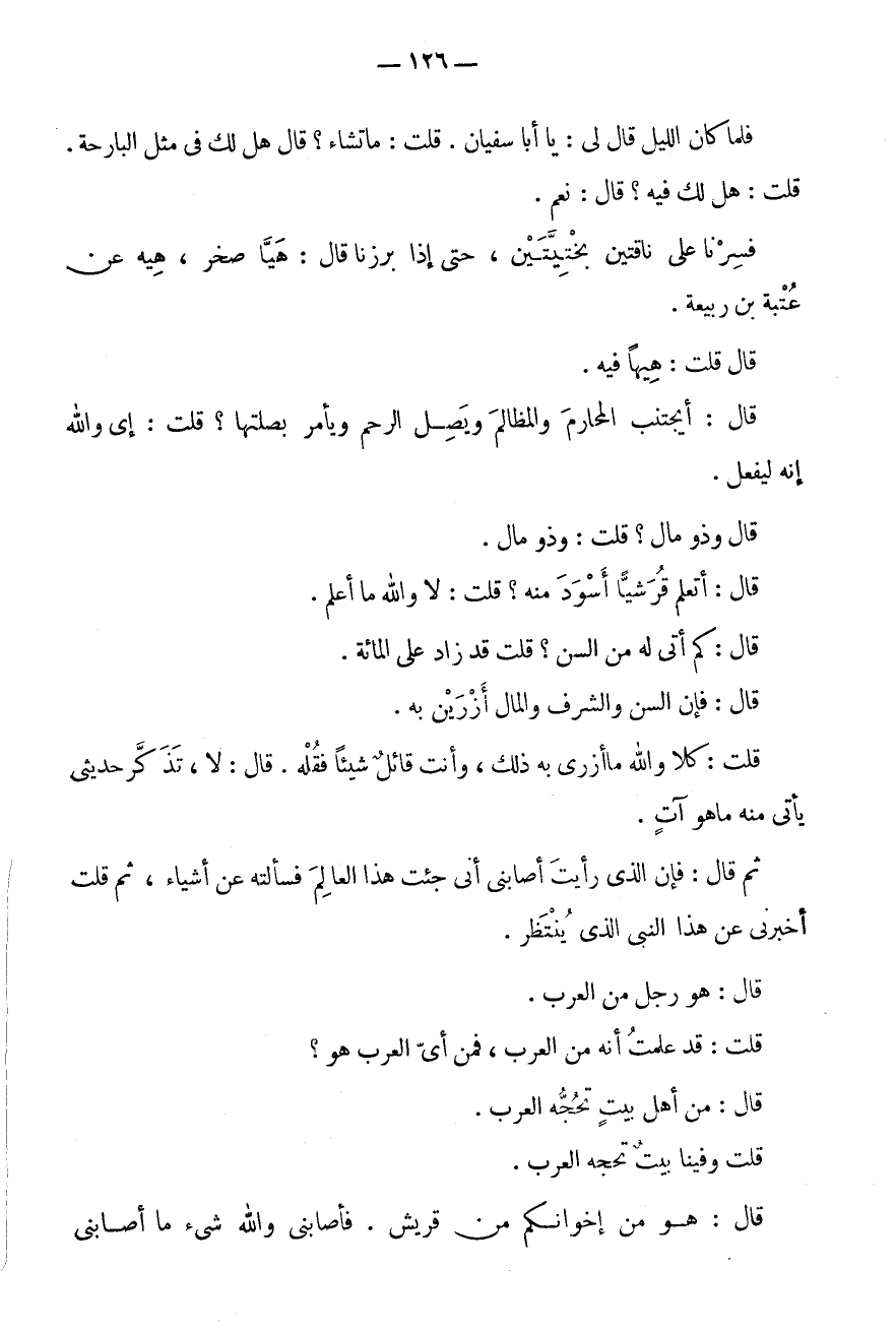 قُلْتُ: قَدْ عَلِمْتُ أَنَّهُ مِنَ الْعَرَبِ، فَمِنْ أَيِّ الْعَرَبِ هُوَ؟ قَالَ: مِنْ أَهْلِ بَيْتٍ تَحُجُّهُ الْعَرَبُ.