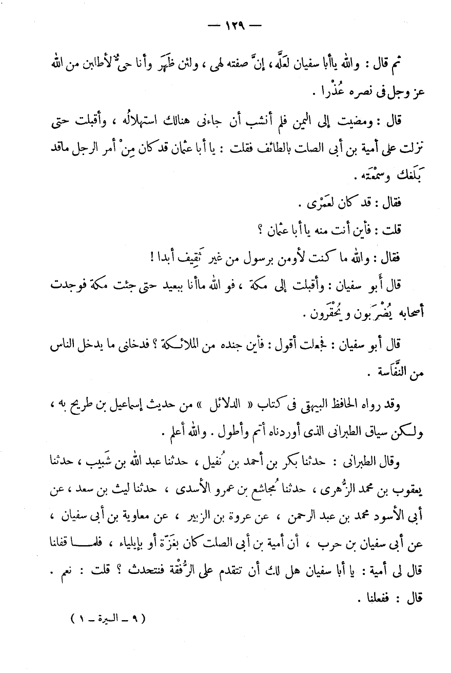قَالَ: وَمَضَيْتُ إِلَى الْيَمَنِ فَلَمْ أَنْشَبْ أَنْ جَاءَنِي هُنَالِكَ اسْتِهْلَالُهُ، وَأَقْبَلْتُ حَتَّى نَزَلْتُ عَلَى أُمَيَّةَ بْنِ أَبِي الصَّلْتِ بِالطَّائِفِ فَقُلْتُ: يَا أَبَا عُثْمَانَ قَدْ كَانَ مِنْ أَمْرِ الرَّجُلِ مَا قَدْ بَلَغَكَ وَسَمِعْتَهُ.