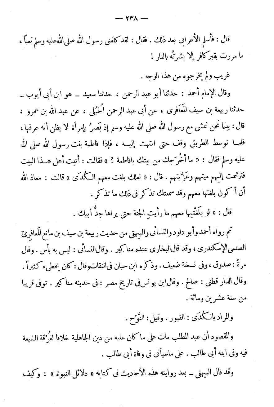 وَالْمَقْصُودُ أَنَّ عَبْدَ الْمُطَّلِبِ مَاتَ عَلَى مَا كَانَ عَلَيْهِ مِنْ دِينِ الْجَاهِلِيَّةِ خِلَافًا لِفِرْقَةِ الشِّيعَةِ فِيهِ وَفِي ابْنِهِ أَبِي طَالِبٍ.