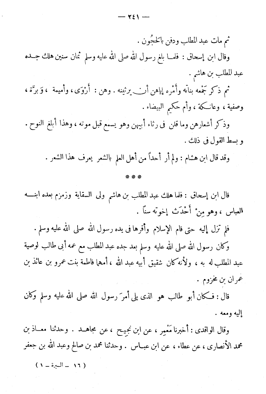 وَكَانَ رَسُولُ اللَّهِ صَلَّى اللَّهُ عَلَيْهِ وَسَلَّمَ بَعْدَ جَدِّهِ عَبْدِ الْمُطَّلِبِ مَعَ عَمِّهِ أَبِي طَالِبٍ لِوَصِيَّةِ