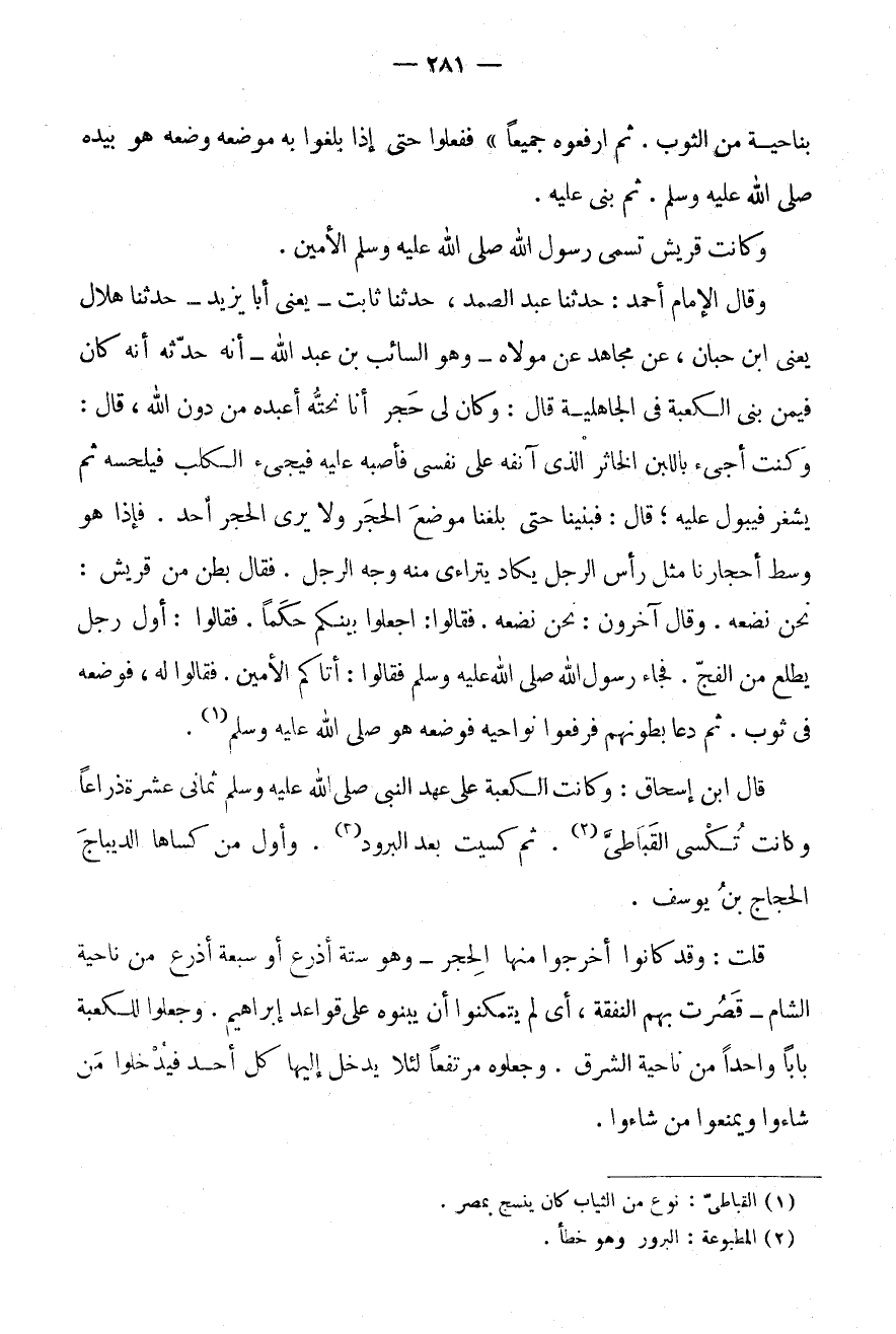 قَالَ ابْنُ إِسْحَاقَ: وَكَانَتِ الْكَعْبَةُ عَلَى عَهْدِ النَّبِيِّ صَلَّى اللَّهُ عَلَيْهِ وَسَلَّمَ ثَمَانِيَ عَشْرَةَ ذِرَاعًا وَكَانَتْ تُكْسَى الْقَبَاطِيَّ (2) .
