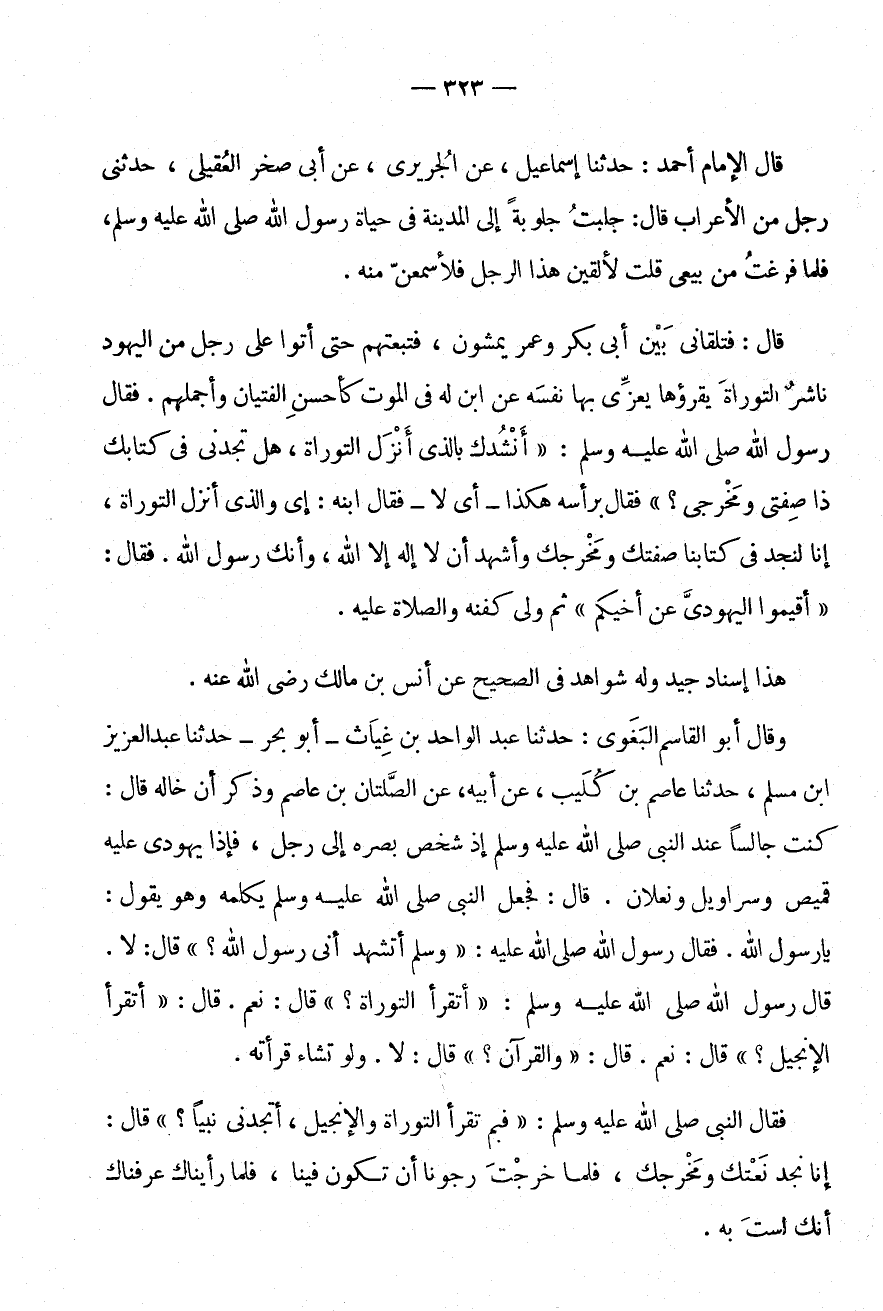 قَالَ رَسُولُ اللَّهِ صَلَّى اللَّهُ عَلَيْهِ وَسَلَّمَ: " أَتَقْرَأُ التَّوْرَاةَ؟ " قَالَ: نَعَمْ.