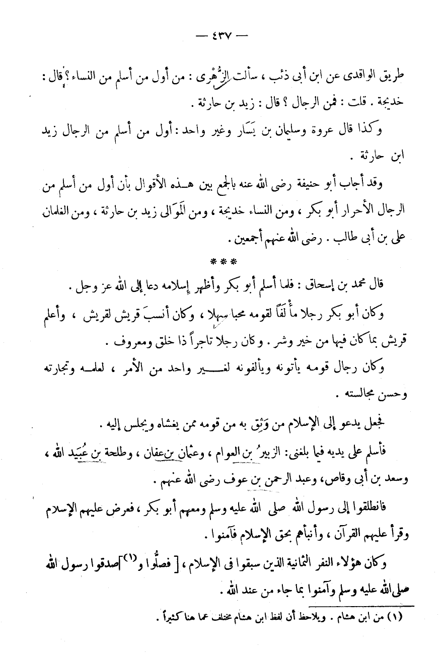 وَكَانَ هَؤُلَاءِ النَّفَرُ الثَّمَانِيَةُ الَّذِينَ سَبَقُوا فِي الاسلام، [فصلوا و (1) ] صدقُوا رَسُولَ اللَّهِ صَلَّى اللَّهُ عَلَيْهِ وَسَلَّمَ وَآمَنُوا بِمَا جَاءَ من عِنْد الله.