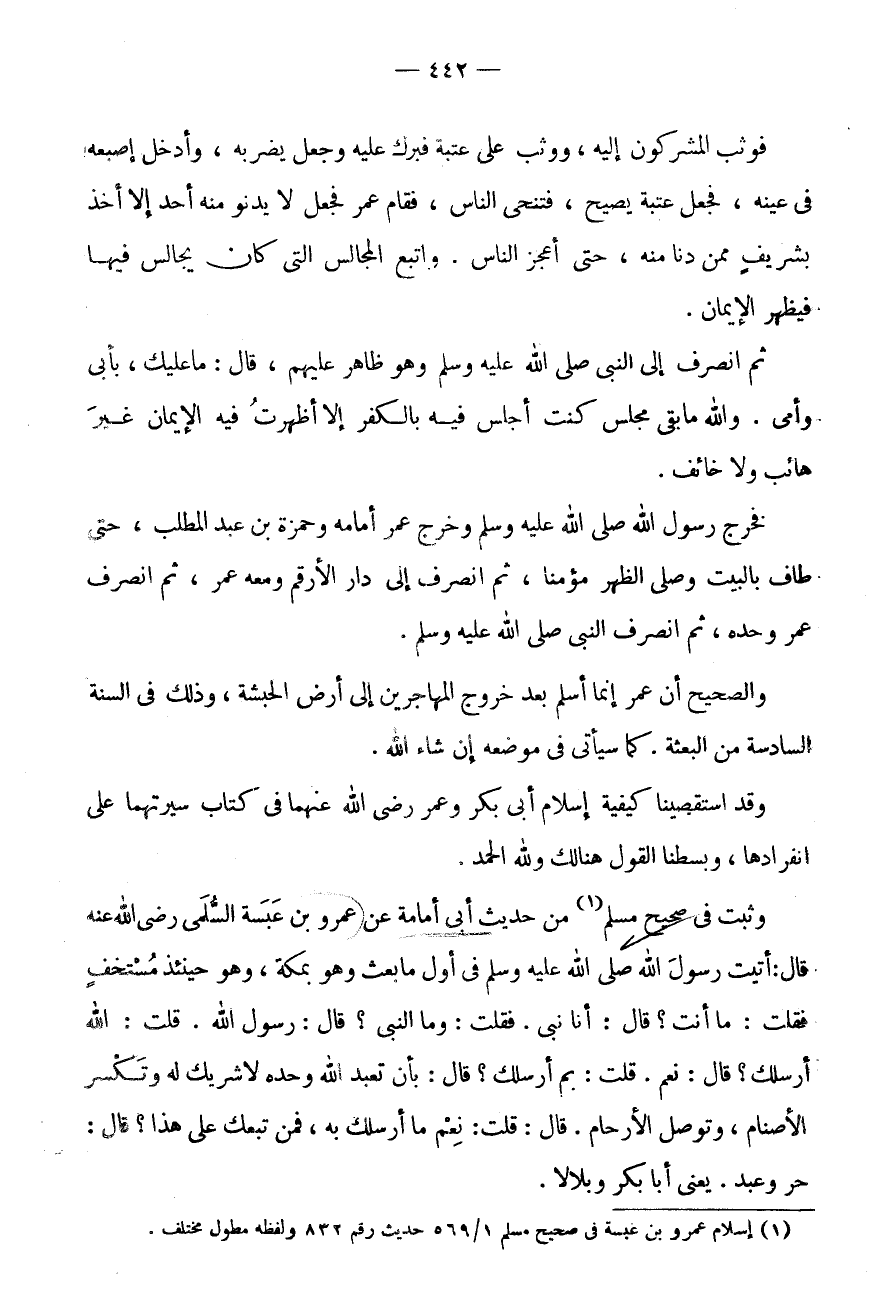 (1) إِسْلَام عَمْرو بن؟ بسة فِي صَحِيح مُسلم 1 / 569 حَدِيث رقم 832 وَلَفظه مطول مُخْتَلف.
