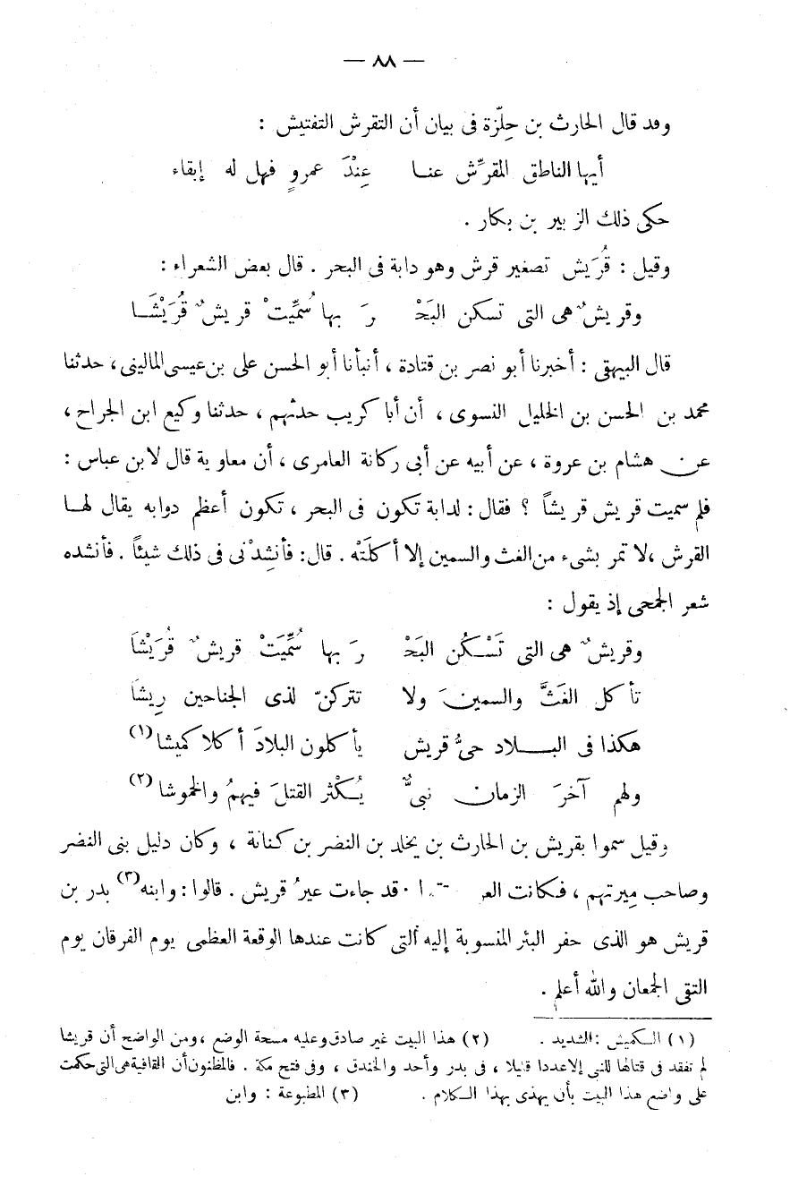 (2) هَذَا الْبَيْت غير صَادِق وَعَلِيهِ مسحة الْوَضع، وَمن الْوَاضِح أَن قُريْشًا لم تفقد فِي قتالها للنبى إِلَّا عددا قَلِيلا، فِي بدر وَأحد وَالْخَنْدَق، وفى فتح مَكَّة.