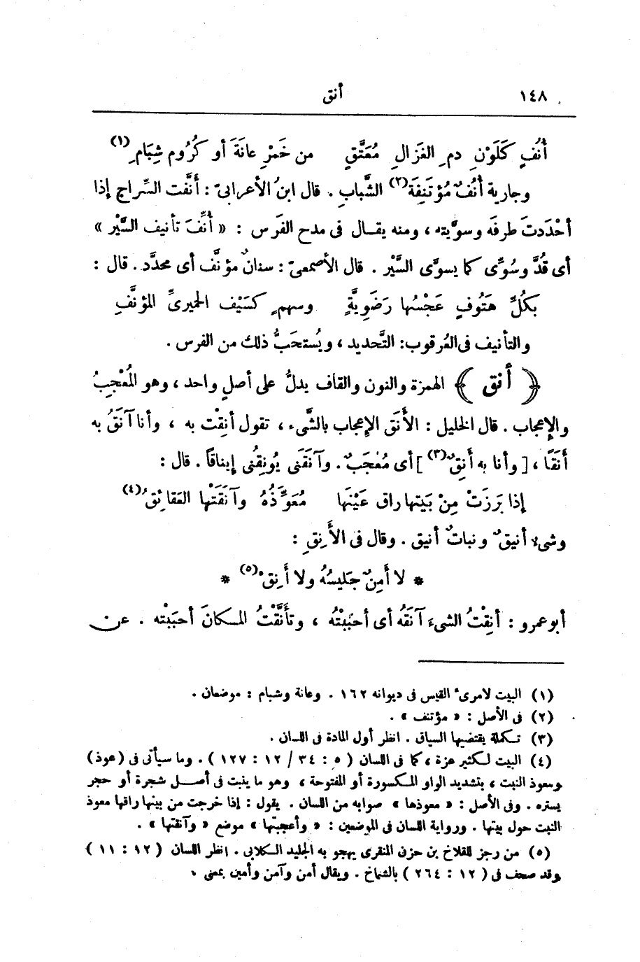 أَبُو عَمْرٍو: أَنِقْتُ الشَّيْءَ آنَقُهُ، أَيْ: أَحْبَبْتُهُ، وَتَأَنَّقْتُ الْمَكَانَ أَحْبَبْتُهُ. عَنِ